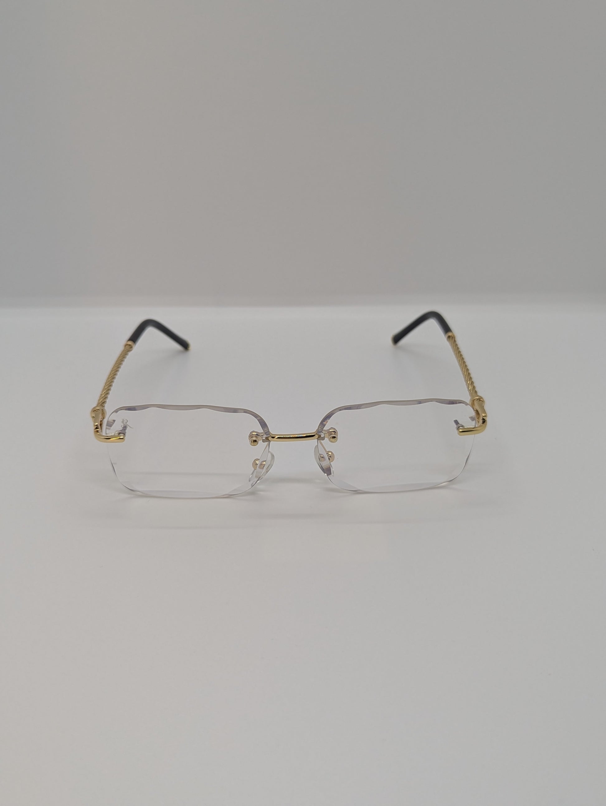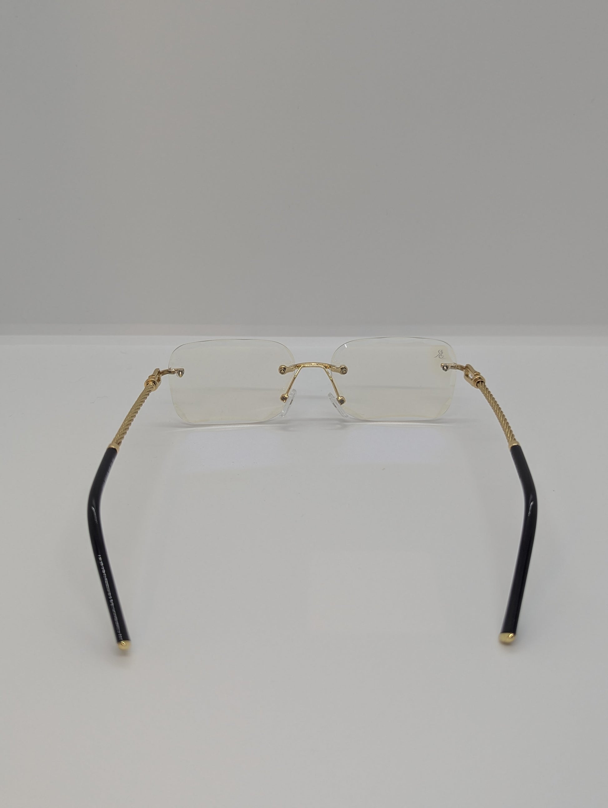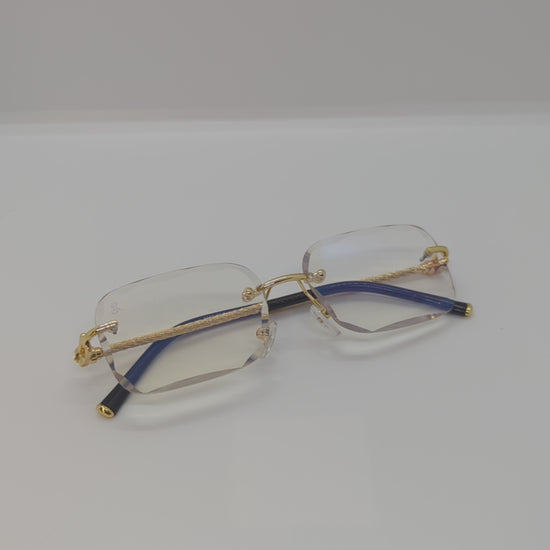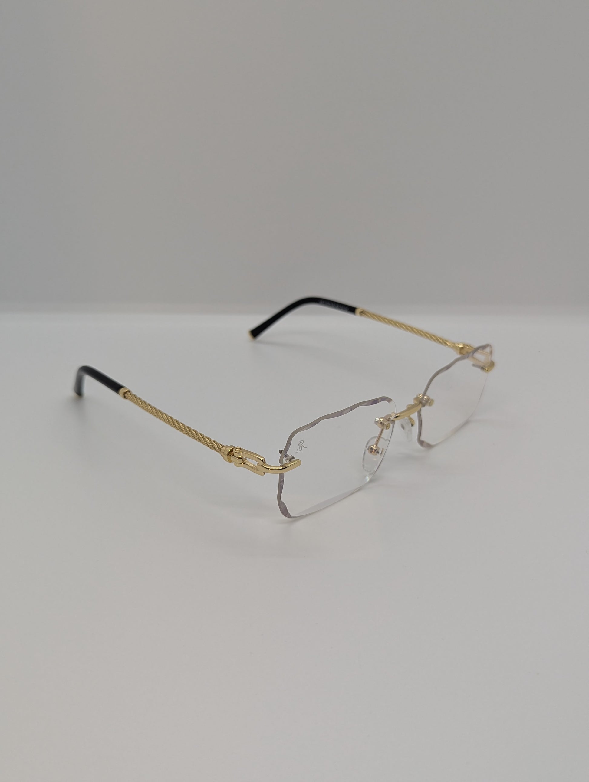 Conçues avec un cadre en titane et acier inoxydable, elles sont à la fois robustes et incroyablement légères, offrant un confort inégalé tout au long de la journée. Leur plaquage en poudre d'or ajoute une touche de raffinement, reflétant un éclat sophistiqué à chaque angle.